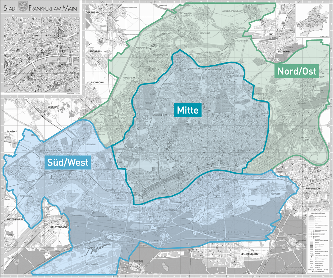 | Gebiet Mitte | Gebiet Süd-West | Gebiet Nord-Ost |
